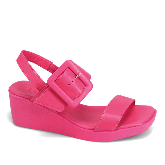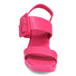 Barbiecore is here to stay! These monochromatic wedges hopped right out of the dreamhouse closet. With a bold buckle and thick colour-matched heel, these sandals are the focal point of any look.